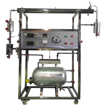 電蒸汽鍋爐、套管換熱器、蒸汽冷凝罐、蒸汽及水流量測試設備、加熱由固體調壓模塊無級調節,由多路巡檢儀顯示的溫度測試系統 ,不銹鋼臺架及控制屏 等。