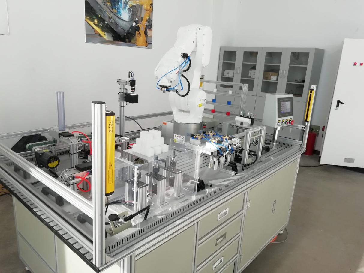 2 、碼垛:碼垛是模擬工業場合的自動搬運碼垛功能設計,可以自動記錄碼垛位置和高度,具有重復精度高,自動計算旋轉角度等功能;工業機器人工具盤上安裝了氣動吸盤;包含一個輸送帶,采用步進電機驅動;電機速度可以進行調節;可以實現將模擬物料送到輸送帶上進行定向傳送;具有傳感器能夠檢測模擬物料是否到達指定位置。