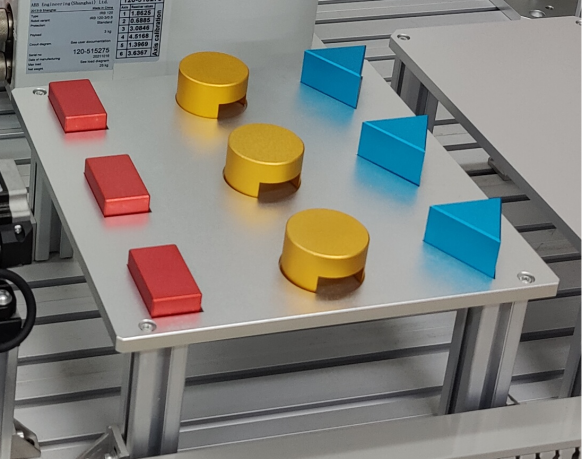 1 、分揀搬運(yùn): 配備圓形、三角形、方形等物料模板;機(jī)器人可精準(zhǔn)完成各種形狀物料分揀搬運(yùn);可擴(kuò)充配置視覺(jué)組件,選配視覺(jué)條件下可完成全自動(dòng)分揀(含顏色、位置、坐標(biāo)、角度等識(shí)別);