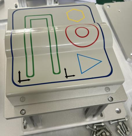 3 運(yùn)動(dòng)軌跡模塊: TCP 練習(xí)區(qū)主要作為工業(yè)機(jī)器人的基礎(chǔ)學(xué)習(xí)環(huán)節(jié),能動(dòng)態(tài)直觀的體現(xiàn)出 TCP 示教的重要性和示教的精度,能夠自由更換示教尖端;可實(shí)現(xiàn) TCP 標(biāo)定練習(xí),提供 TCP 標(biāo)定用錐形教學(xué)塊;可實(shí)現(xiàn)基本軌跡編程練習(xí),提供三角形、方形教學(xué)軌跡;可實(shí)現(xiàn)復(fù)雜軌跡編程練習(xí),提供曲線教學(xué)軌跡;