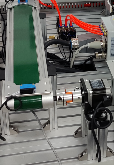 6 )當(dāng)傳送帶單元傳感器檢測(cè)到工件時(shí),傳送帶開(kāi)始工作,根據(jù)工件的顏色、材料進(jìn)行分揀;分揀結(jié)束后,供料臺(tái)回到供料位置,等待下一次運(yùn)行。