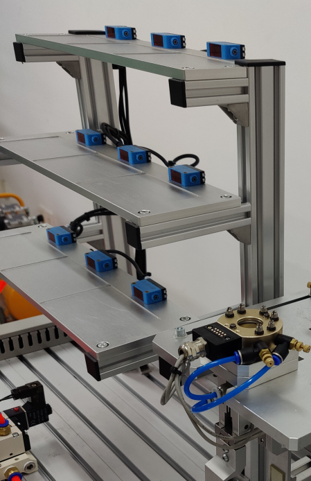 4 流水線模塊:流水線應(yīng)用場(chǎng)景與工廠實(shí)際物流情況相似,可進(jìn)行機(jī)器人點(diǎn)位示教編程與調(diào)試,可根據(jù)學(xué)習(xí)內(nèi)容不同而設(shè)置不同挑選形式,可根據(jù)工件不同采用不同的夾取夾具