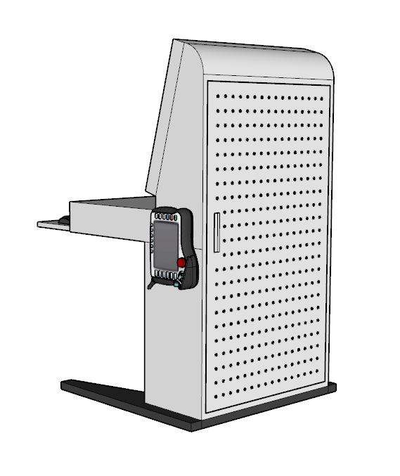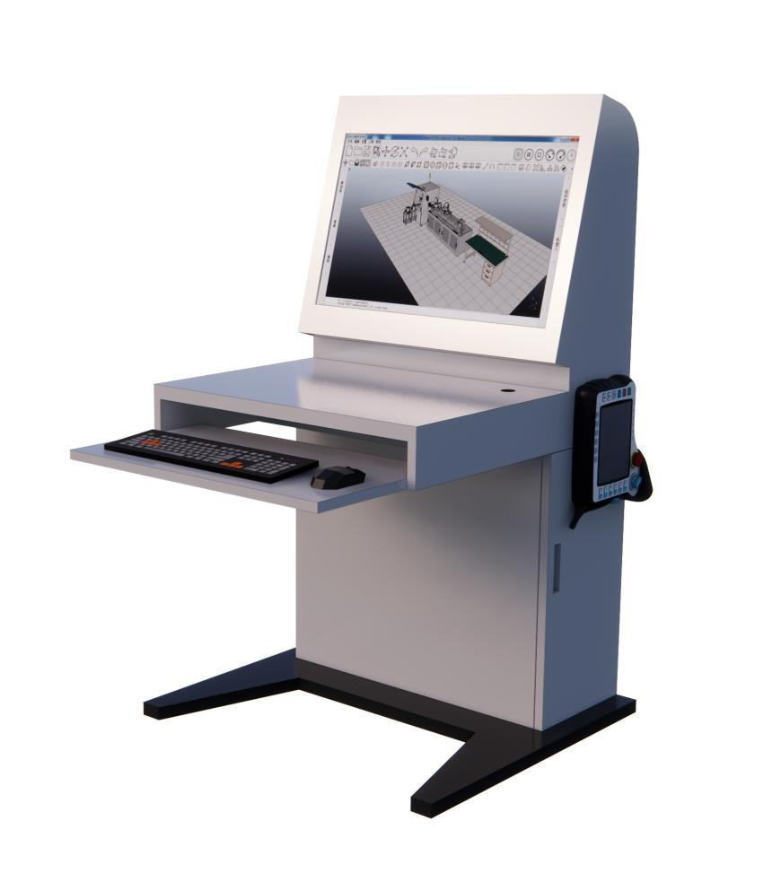 實訓臺整體采用琴式設計,選用 1mm 厚鋼板制作,表面經環保噴塑處理,整體規格: 700mm × 600mm × 1200mm ,背面大開門設計,方便計算機、顯示器、控制器的安裝接線。正面設有鍵盤、鼠標位置。