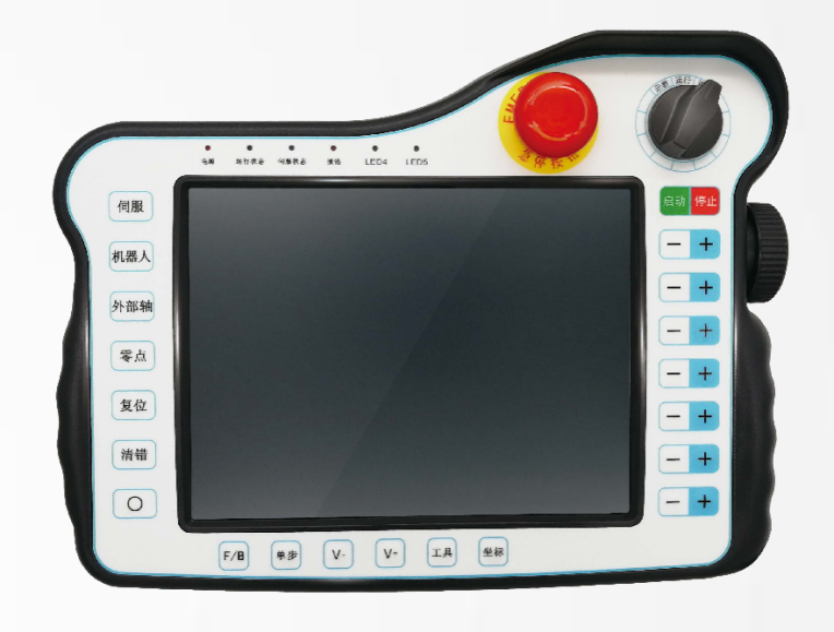 (4) 方便地實現對機器人的手動操作、示教編程、機器人運行等人機對話功能。 8inch TFT 大屏幕,提供豐富、清晰的人機交互窗口,提升產品檔次;