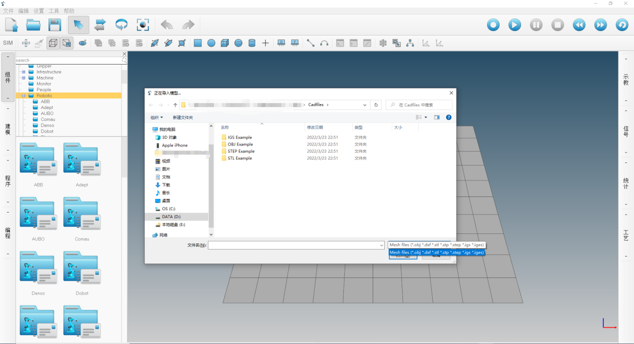 2 )支持多種格式的三維 CAD 模型,可導入擴展名為 step 、 igs 、 stl 等格式;
