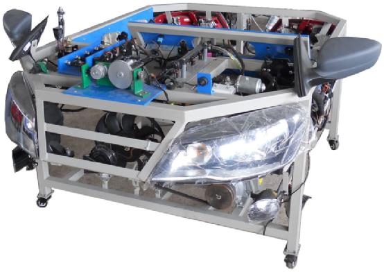 在整車電器基礎上,配備各相關輔助控制裝置,可如原車一樣實際演示起動、充電、點火、燈光、儀表、雨刮、中控門鎖、防盜、電動窗、音響系統等全套整車電器設備的工作原理和過程;