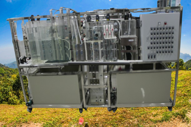 本系統設計包括三級工藝,一級物化處理、二級生物處理與三級深度處理。一級物化處理包括:配水系統、格柵、旋流沉砂池、加藥混凝沉淀系統、電凝聚氣浮、中和調節池。二級生物處理工藝包括:普通活性污泥法污水處理工藝、 A/O 污水處理工藝、 A2/O 污水處理工藝、 UCT T污水處理工藝、 MUCT 污水處理工藝、二級污水出水調節池等。三級深度處理包括:普通快濾池、活性炭吸附裝置、紫外消毒裝置等。生物處理單元由多種工藝形式組成。 自動化控制系統:手動控制機柜、工業平板電腦、工業控制系統、編程電纜、網絡系統、相關軟件。系統主要測點包括:在線 PH 計 9 臺、在線 ORP 儀 4 臺、在線 DO 儀 1 臺、在線變頻攪拌控制系統 6 套、裝置外形尺寸:長度: 16000mm 寬度: 1400mm 高度: 2200mm 、電壓 220V 功率 12000W 。