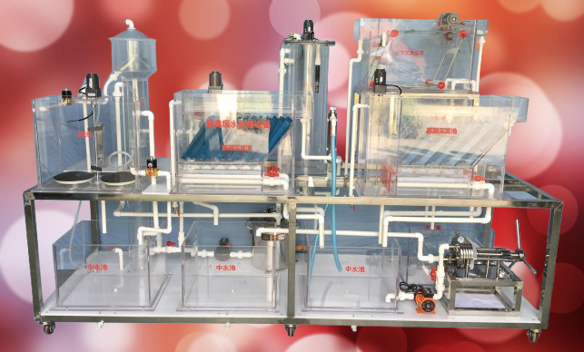 觸摸屏控制、也可以手動(dòng)、在線(xiàn)監(jiān)測(cè)儀( PH 儀和 DO 儀),監(jiān)控等組成,供水系統(tǒng):主要由水箱、不銹鋼支架、水箱液位管和球鬧等組成。污水處理系統(tǒng):裝置對(duì)象設(shè)備整體采用不銹鋼框架進(jìn)行設(shè)計(jì),主要?jiǎng)恿ο到y(tǒng)器件安裝在鋼架上,主要有機(jī)玻璃反應(yīng)器合理的布置安裝在不銹鋼鋼架的上層。下層動(dòng)力系統(tǒng)主要由水泵、風(fēng)機(jī)、中水池裝置等組成。有機(jī)玻璃反應(yīng)器系統(tǒng)主要由有機(jī)玻璃平流式沉淀池、 CSTR 池、輻流式沉淀池、 UASB 池、 SBR 池、絮凝沉淀池、消毒池、固液分離機(jī)、有機(jī)玻璃中和池等組成。曝氣系統(tǒng)主要由風(fēng)機(jī)、曝氣管、攪拌機(jī)、流量計(jì)和管道等組成,在線(xiàn)監(jiān)測(cè)系統(tǒng)主要由 DO 在線(xiàn)儀、 PH 在線(xiàn)儀、浮球液位開(kāi)關(guān)等組成。