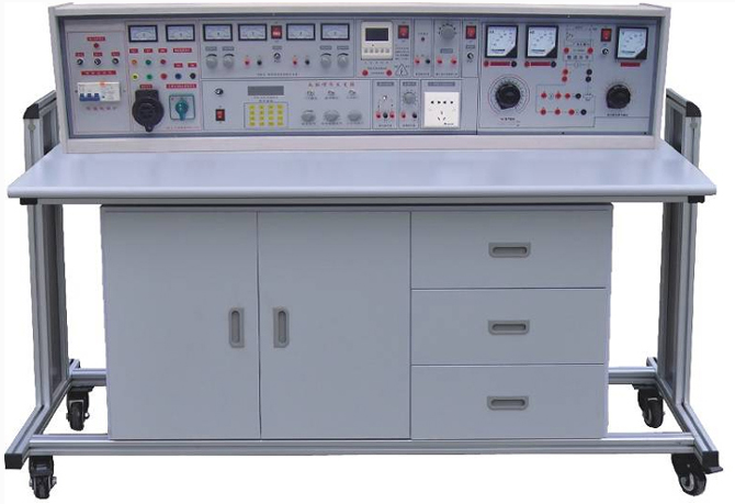 3、示教控制臺: 1臺示教控制臺,分別控制12臺學生臺的電源,通用電路板演示屏立在實驗臺上,尺寸150cm×70cm,用于講解、演示。