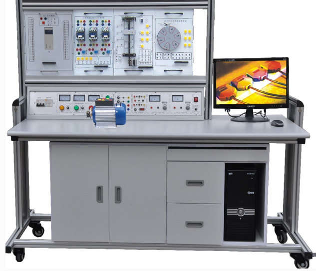 機電傳動綜合實驗裝置是為了配合 PLC 可編程控制器實驗臺使用而設計的外接演示裝置。它由 LED 發光二極管、大型 LED 數碼管、直流電機、步進電機等執行機構用其他外圍電路模擬實際工業控制過程中的狀態,它形象生動的演示了 PLC 的整個執行過程。通過該裝置,可以鍛煉學生的動手能力,能夠形象生動的執行機構驗證自己編寫程序的正確性,掌握 PLC 的實際應用,增強學生對 PLC 的學習興趣。演示掛箱后蓋由鋁合金注塑而成,箱體結構合理,工藝先進,美觀大方。該裝置在演示屏上位置可任意移動、互換。