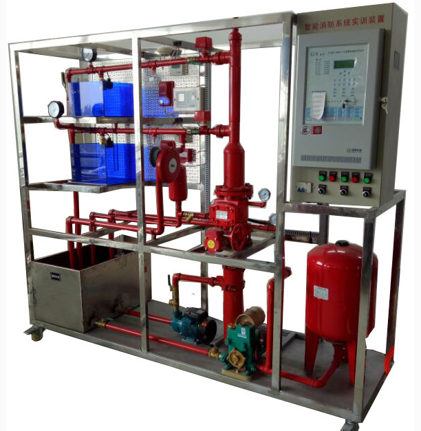 消防聯動控制中心及噴淋滅火系統實訓裝置 ” 依據 [ 建筑消防設計規范 ] 進行標準設計該系統具有消防控制聯動中心、消防噴水滅火系統典型結構,能夠完成火災探測,早期探測,火災報警,現場滅火,同時還能清楚的展示噴淋滅火系統的典型設備構成和系統工作原理,通過該裝置的操作學習,學生可以對樓宇中噴水滅火系統的結構有一個全面的了解,噴淋系統與聯動動控制中心系統實現聯網控制,探測器與聯動中心聯接實現手自動控制;完全實現現智能化大樓設計,掌握建筑物內部主要滅火設備的應用,熟悉樓宇中濕式報警閥、水流指示器、壓力開關等滅火設備的結構和原理,了解消防控制中心的聯動操作與設置,可與廣播電話中心的控制與操作設置,了解現代建筑消防聯動設備系統原理和調試,熟悉消防的控制原理和工作過程。它適用于學習《建筑滅火系統》、《樓宇給排水系統》、《樓宇消防控制系統》等專業課的中職業院校的實訓教學。