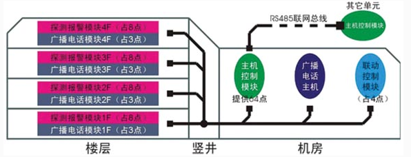 本系統通過目前主流消防系統中常用的各種火災探測器(感溫型和感煙型)的參數變化來進行火災報警,并實現相關的聯動控制。系統采用總線結構,采用帶聯動功能的火災報警控制器,配套消防電話系統及消防廣播系統,可進行消防報警及聯動模擬、消防事故廣播、消防電話、地址編碼、編程設定等實踐項目。