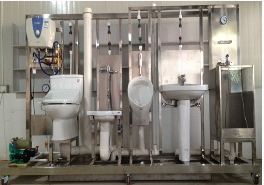 3 、排水系統由排水管道和水處理單元等組成。排水管路主要采用 UPVC 管進行設計,可進行 UPVC 管的切割、粘接、安裝和通水試驗操作。